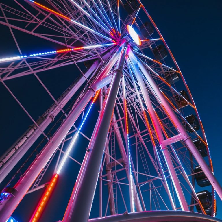 The type RR is used for our fixed and semi transportable wheels. This type can be build on a concrete foundation for a permanent location, but also on ballast tanks, to still allow transportation of the wheel. With the RR types, you need a crane for building the wheel, but due to our years of development, it can still be build quickly.